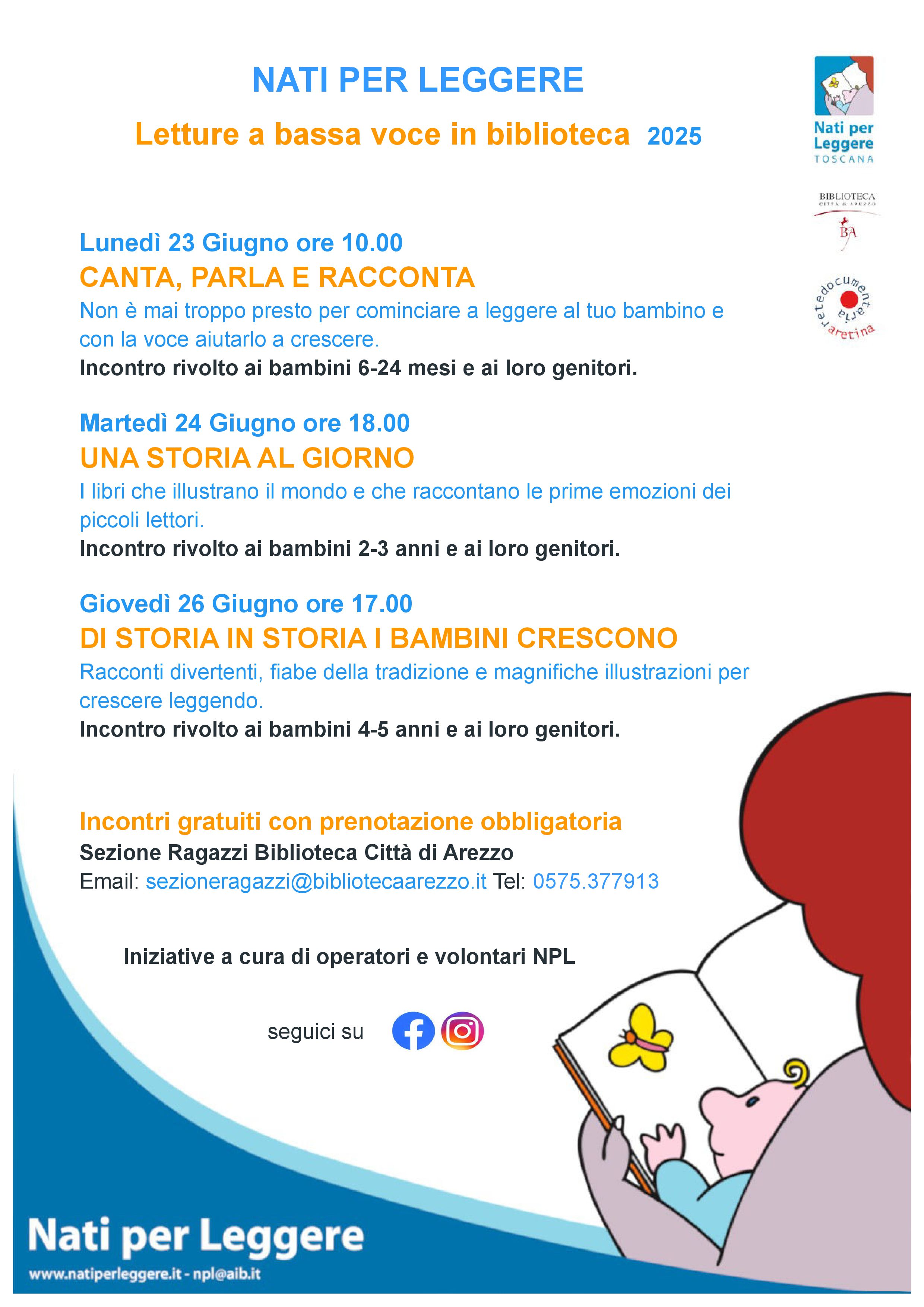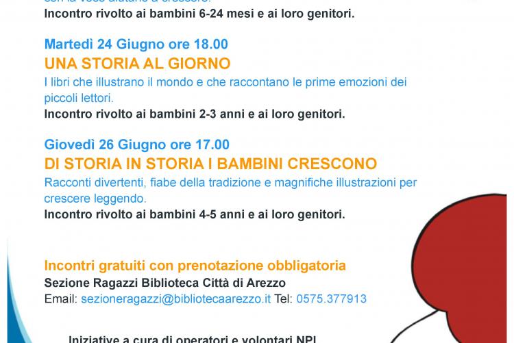 Proseguono anche nel mese di GIUGNO, nella Sezione Ragazzi della Biblioteca Città di Arezzo, gli appuntamenti di Nati per Leggere dedicati ai bambini da 0-5 anni.