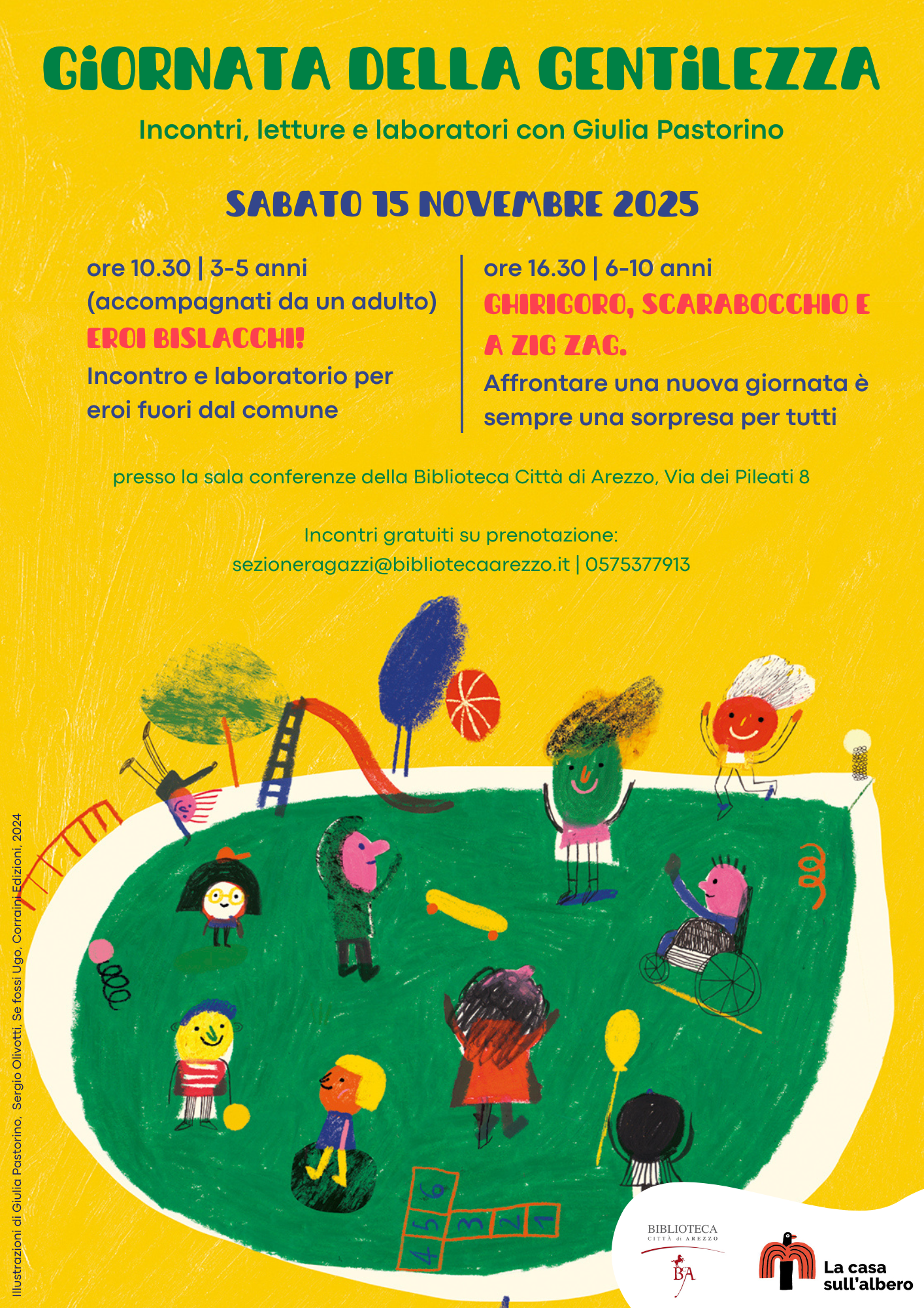 Per il quarto anno la Biblioteca Città di Arezzo, in collaborazione con la libreria La casa sull'albero, festeggia questa importante ricorrenza ospitando l'illustratrice Giulia Pastorino, una delle figure di punta del panorama italiano, molto conosciuta ed apprezzata anche all'estero, le cui opere sono state più volte selezionate alla mostra degli illustratori della Bologna Children's Book Fair e vincitrice del premio Andersen 2025 con il libro Se fossi Ugo, Corraini Edizioni, nella categoria miglior libro 3-6 anni.