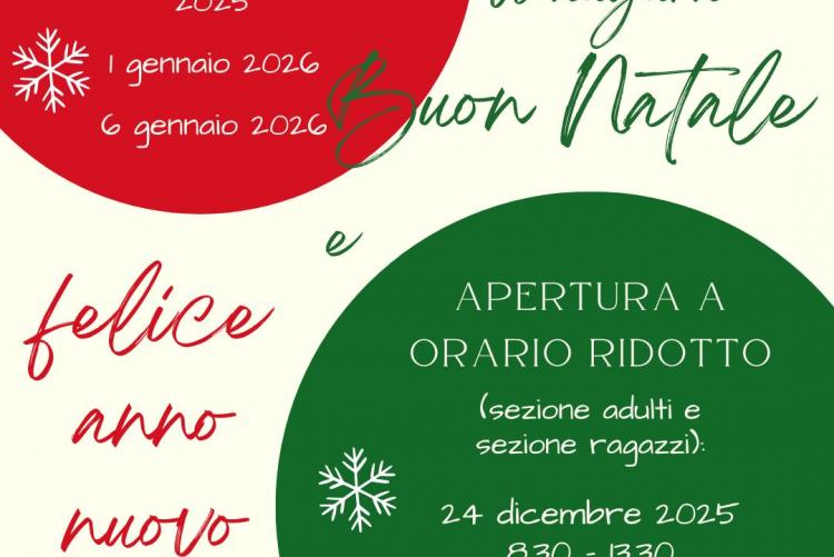 Si avvisano gli utenti che la Biblioteca (sezione adulti e sezione ragazzi) effettuerà l’orario ridotto nei seguenti giorni:
