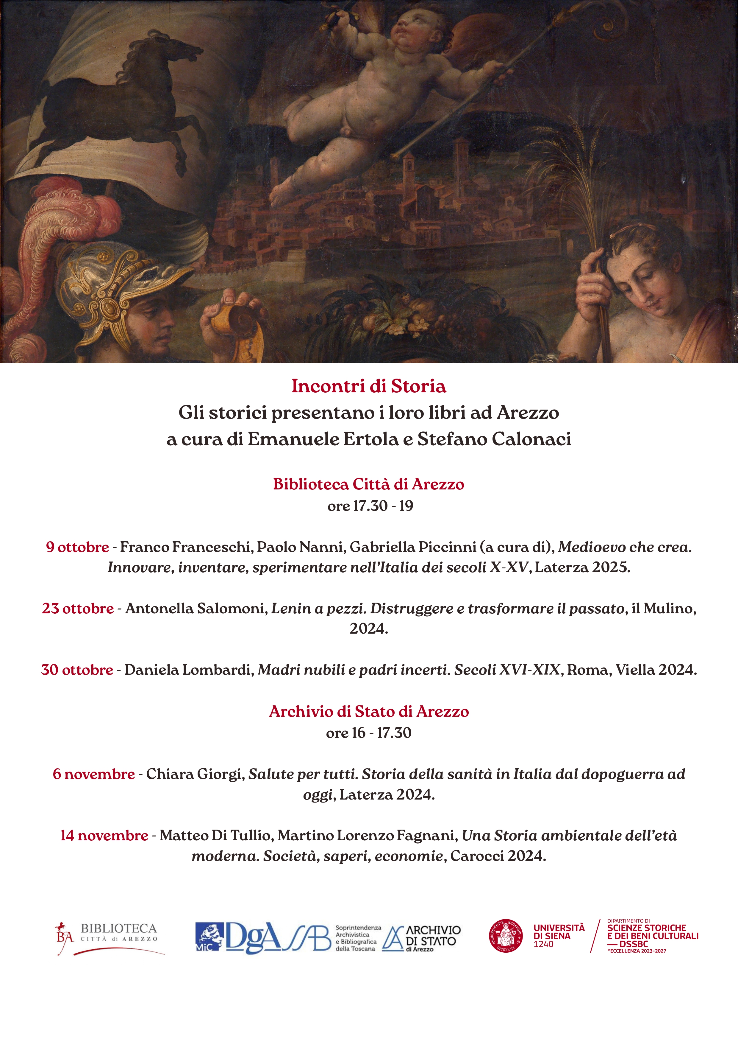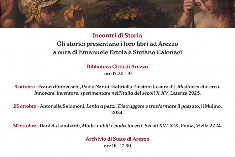 La nostra Biblioteca è lieta di ospitare i primi tre appuntamenti della nuova rassegna "Incontri di Storia. Gli storici presentano i loro libri ad Arezzo", a cura di Emanuele Ertola e Stefano Calonaci.