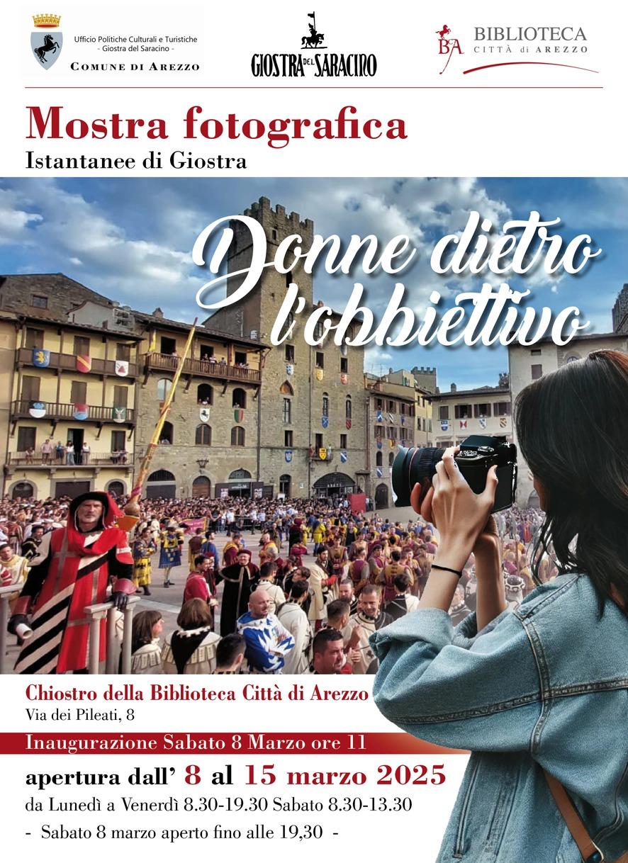 Dopo il successo dell'iniziativa dello scorso anno "Dame in Giostra", realizzata con gli scatti del presente e del passato inviati da quartieri, quartieristi e appassionati di Giostra, quest'anno la mostra torna celebrando la donna, non come soggetto dello scatto, ma come occhio dietro l'obiettivo. Undici le autrici delle immagini in mostra che resteranno esposte nel Chiostro della Biblioteca da sabato 8 fino a sabato 15 marzo.