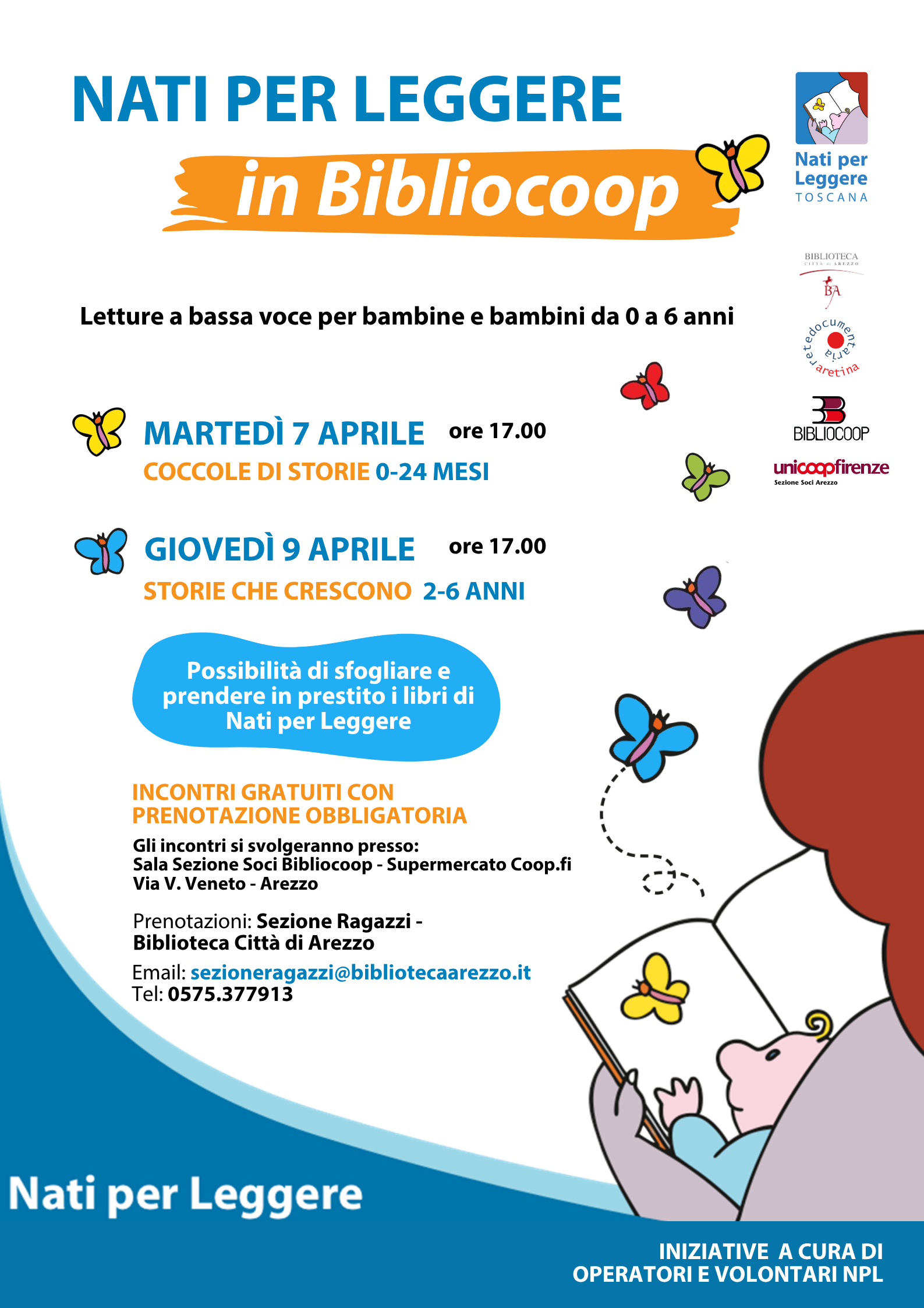 Nel mese di APRILE arrivano alla Bibliocoop di via V. Veneto due appuntamenti di Nati per Leggere dedicati ai bambini da 0-6 anni.