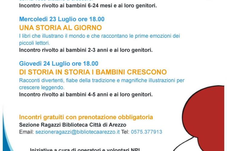 Proseguono anche nel mese di LUGLIO, nella Sezione Ragazzi della Biblioteca Città di Arezzo, gli appuntamenti di Nati per Leggere dedicati ai bambini da 0-5 anni.