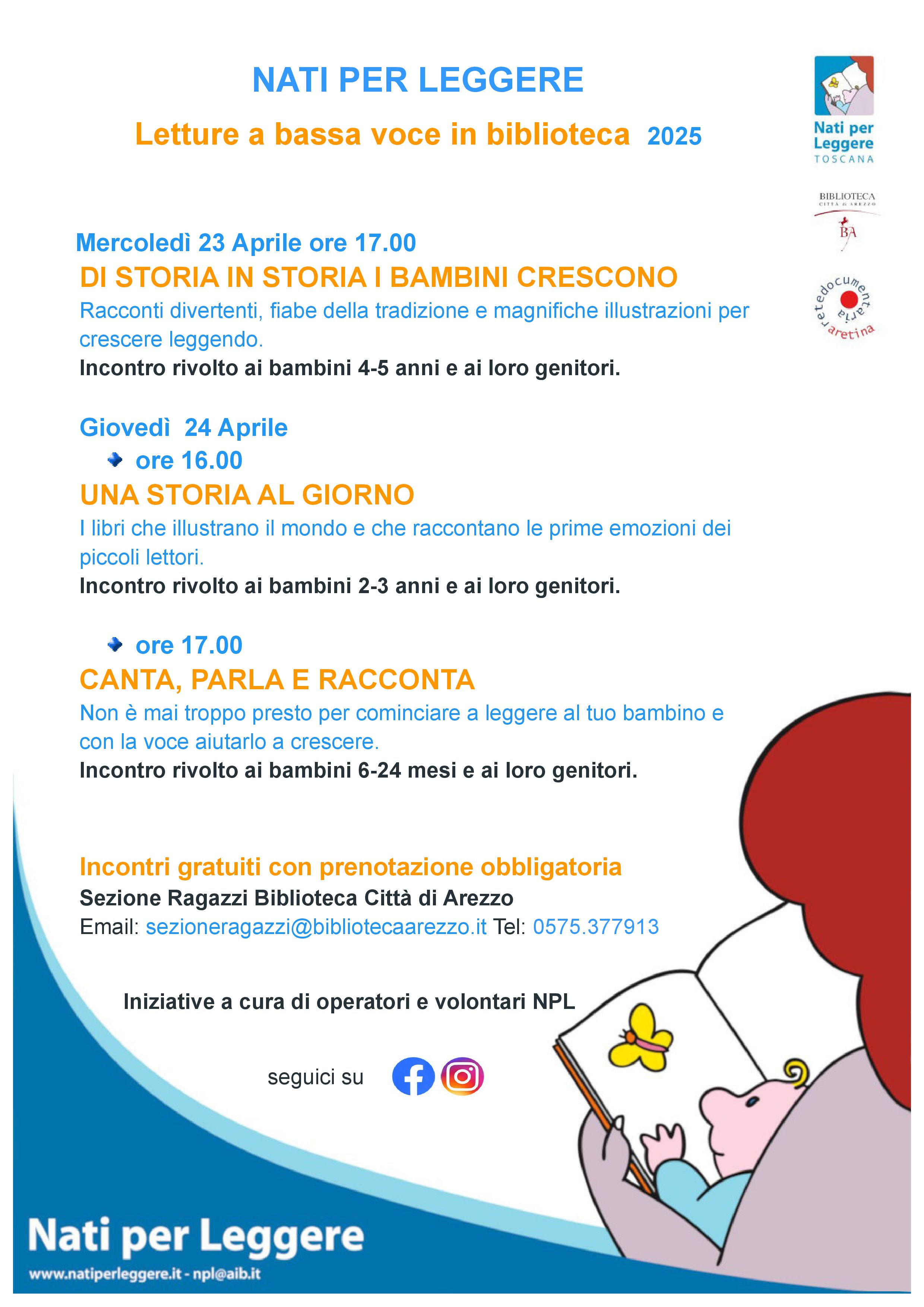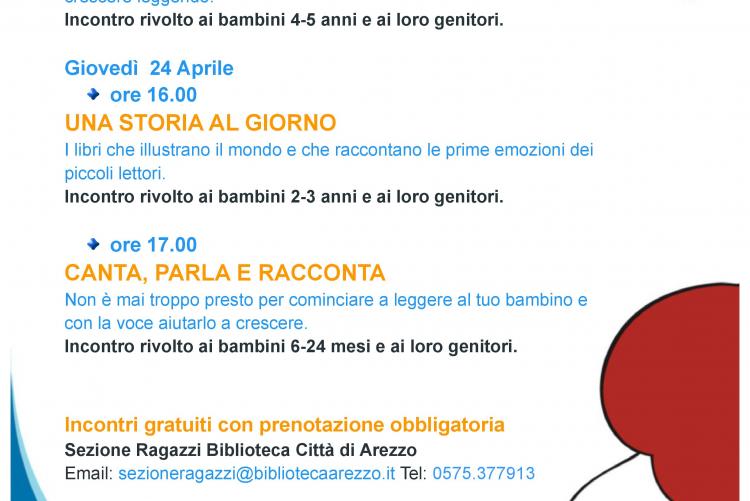 Proseguono anche nel mese di APRILE, nella Sezione Ragazzi della Biblioteca Città di Arezzo, gli appuntamenti di Nati per Leggere dedicati ai bambini da 0-5 anni.