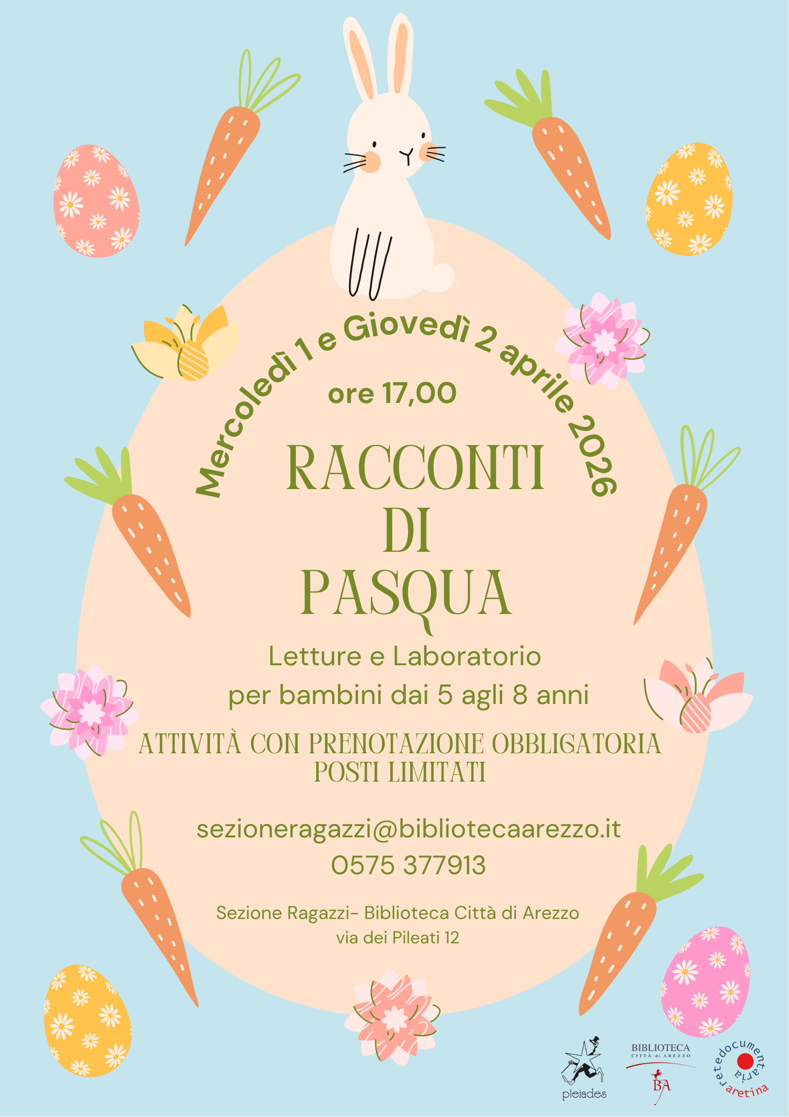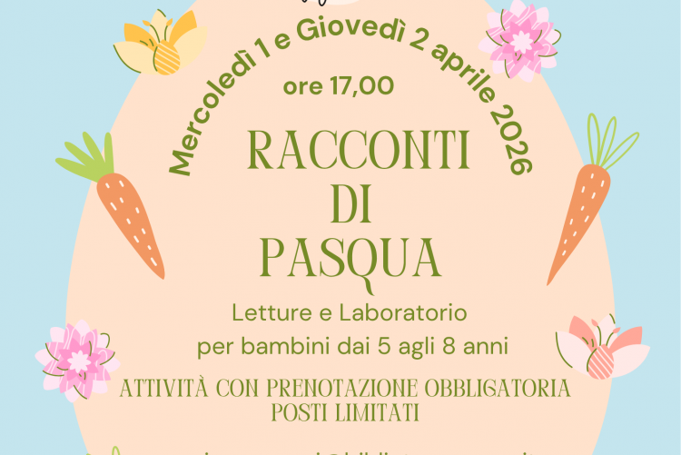 Con l’arrivo della primavera tornano anche gli appuntamenti dedicati alla Pasqua in Sezione Ragazzi. Nei giorni di mercoledì 1 aprile e giovedì 2 aprile alle ore 17,00 si terranno due incontri pensati per bambine e bambini dai 5 agli 8 anni, che uniranno il piacere dell’ascolto alla creatività manuale.