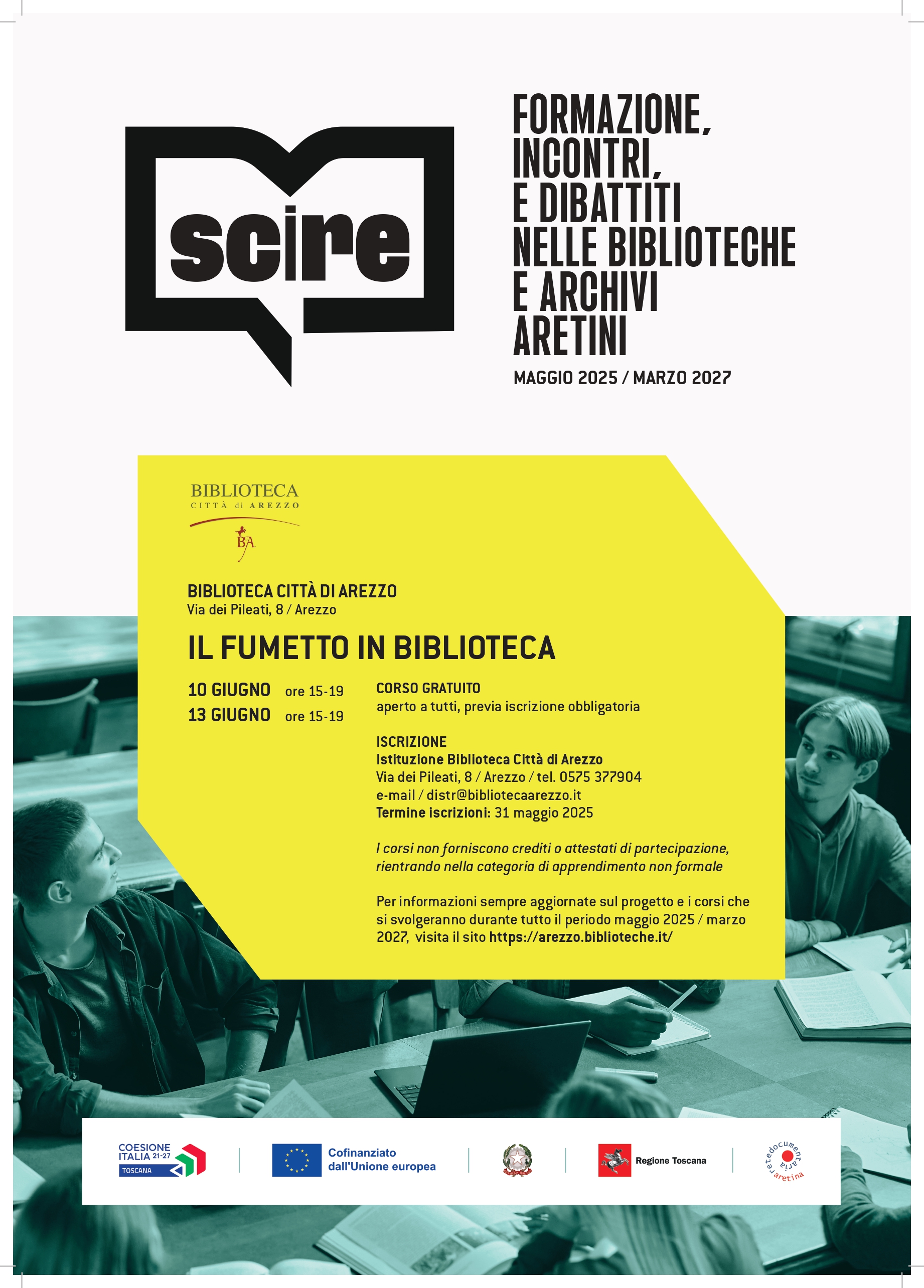 Il 10 giugno 2025, dalle ore 15 alle ore 19, inizia presso la Biblioteca Città di Arezzo il corso "Il fumetto in Biblioteca", volto principalmente a fornire ai bibliotecari elementi di conoscenza del linguaggio del fumetto, definendone le caratteristiche, le specificità e l'impatto mediatico, tanto dal punto di vista storico-critico quanto per la formazione di raccolte e l'acquisizione di fondi.
