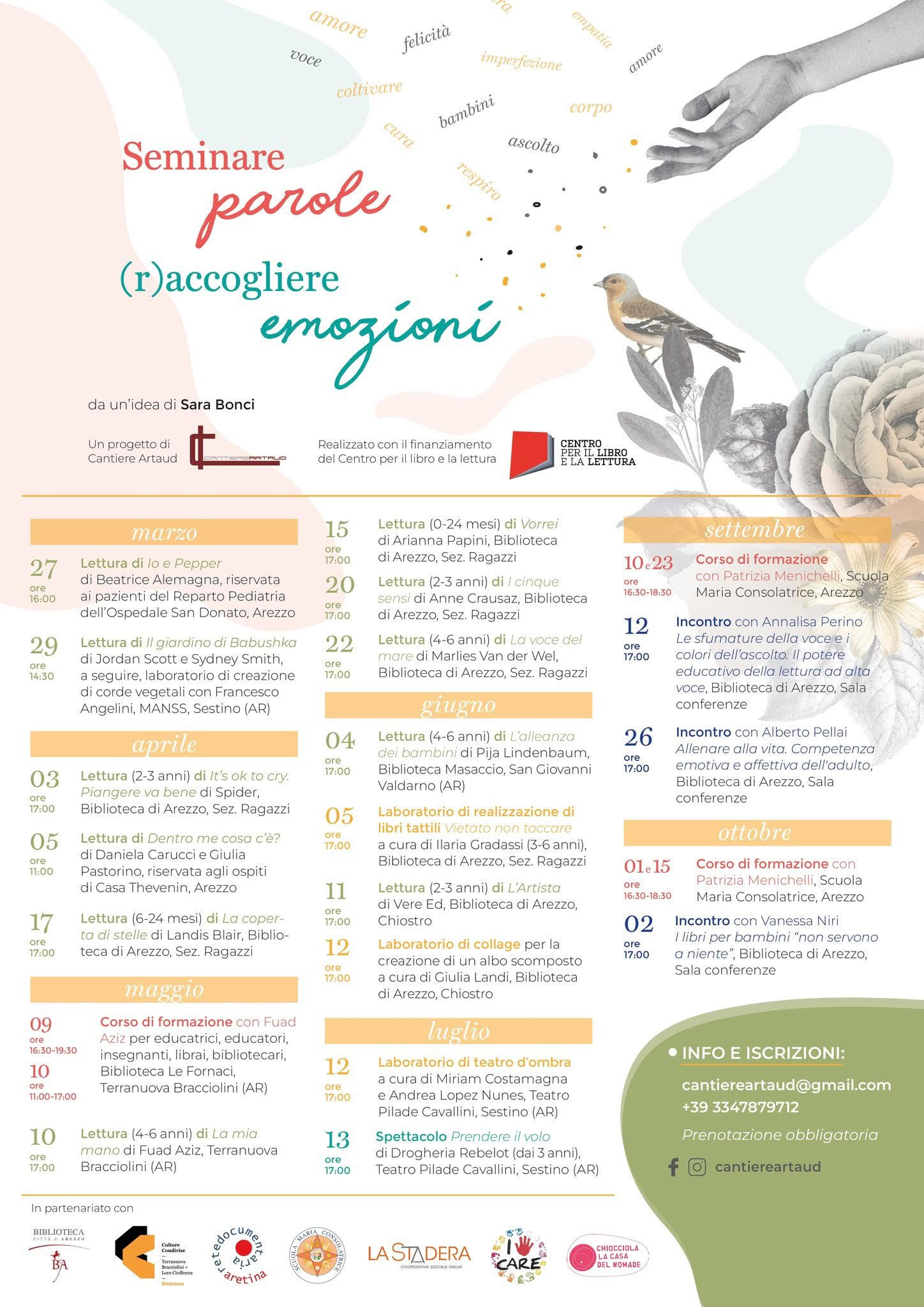 Parte il 27 marzo il progetto di Cantiere Artaud dal titolo Seminare parole, (r)accogliere emozioni, realizzato con il finanziamento del Centro per il libro e la lettura nell’ambito del Bando “Leggimi 0-6”.